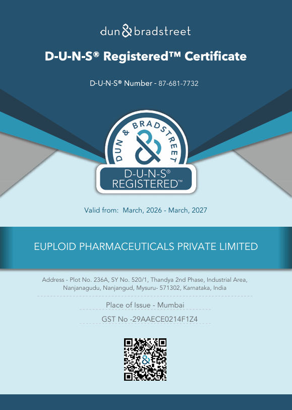 Euploid Pharmaceutical Private Limited is WHO,GMP and ISO 9001:2008 Certified Pharmaceutical Company. A new modern facility designed as per new schedule – M guidelines and EUGMP,MHRA Compliant facility. We can be proud of the fact that the manufacturing facility is at the India’s heritage hub, Royal city and yoga capital city of the world & Nestled in the southern state of Karnataka, Mysore is a city steeped in history and culture. We can be proud of the fact that the head quarters are at India’s IT hub, Bangalore (Karnataka, India). All drugs are manufactured in India and the company prides itself on its MAKE IN INDIA WORLD CLASS PHARMACEUTICALS motto.